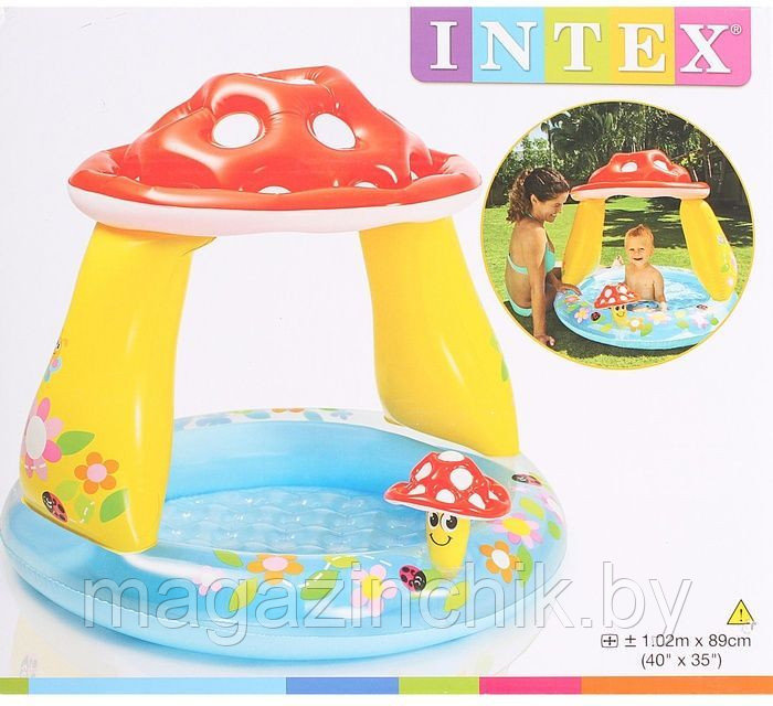 Надувной детский бассейн Новинка «Веселый мухомор» Intex 57114 102х89х17 см с надувным дном купить в Минске